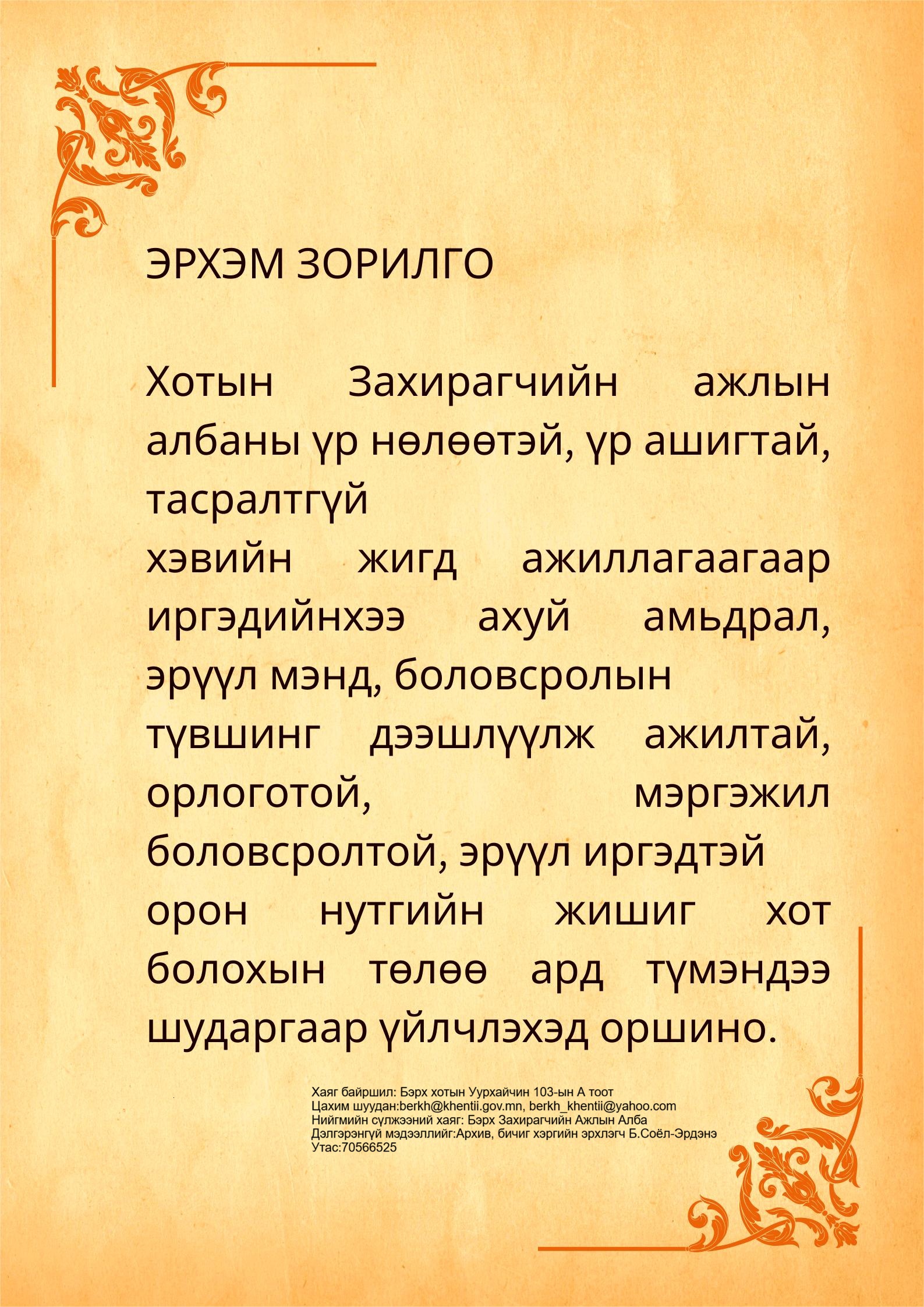 Гүйцэтгэх албан тушаалын сонгон шалгаруулалтын зар